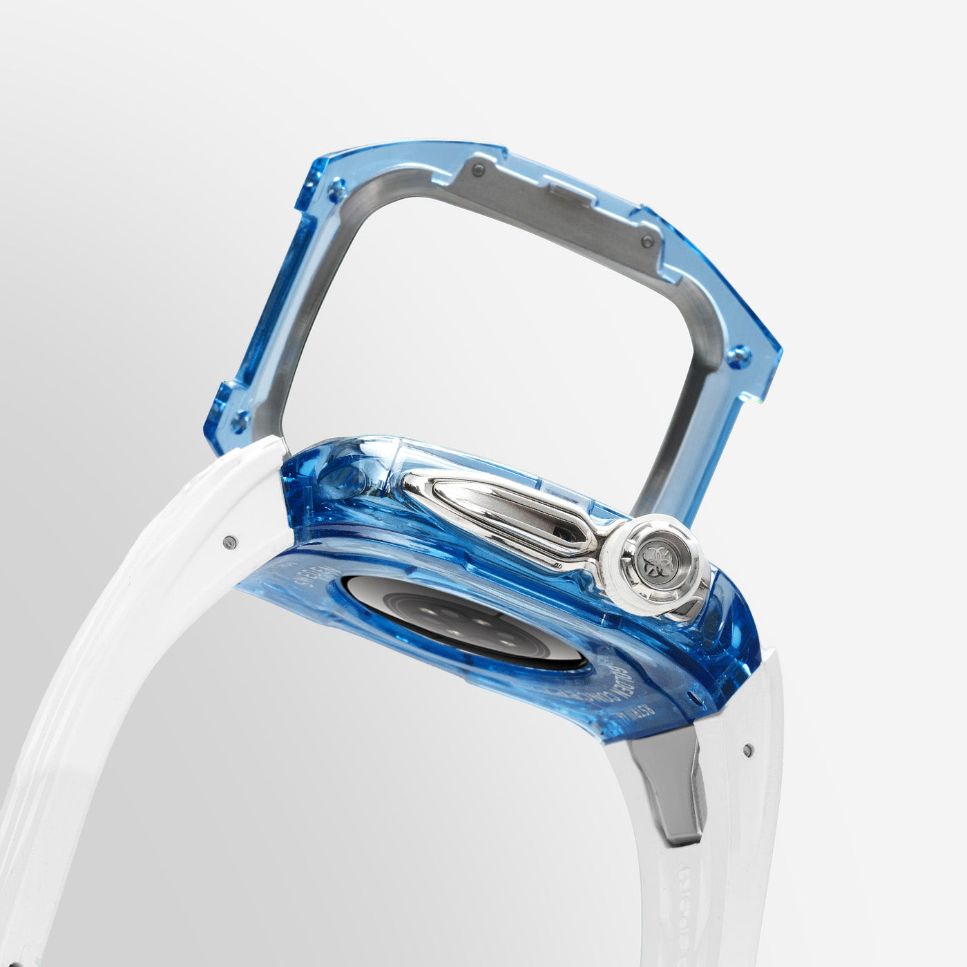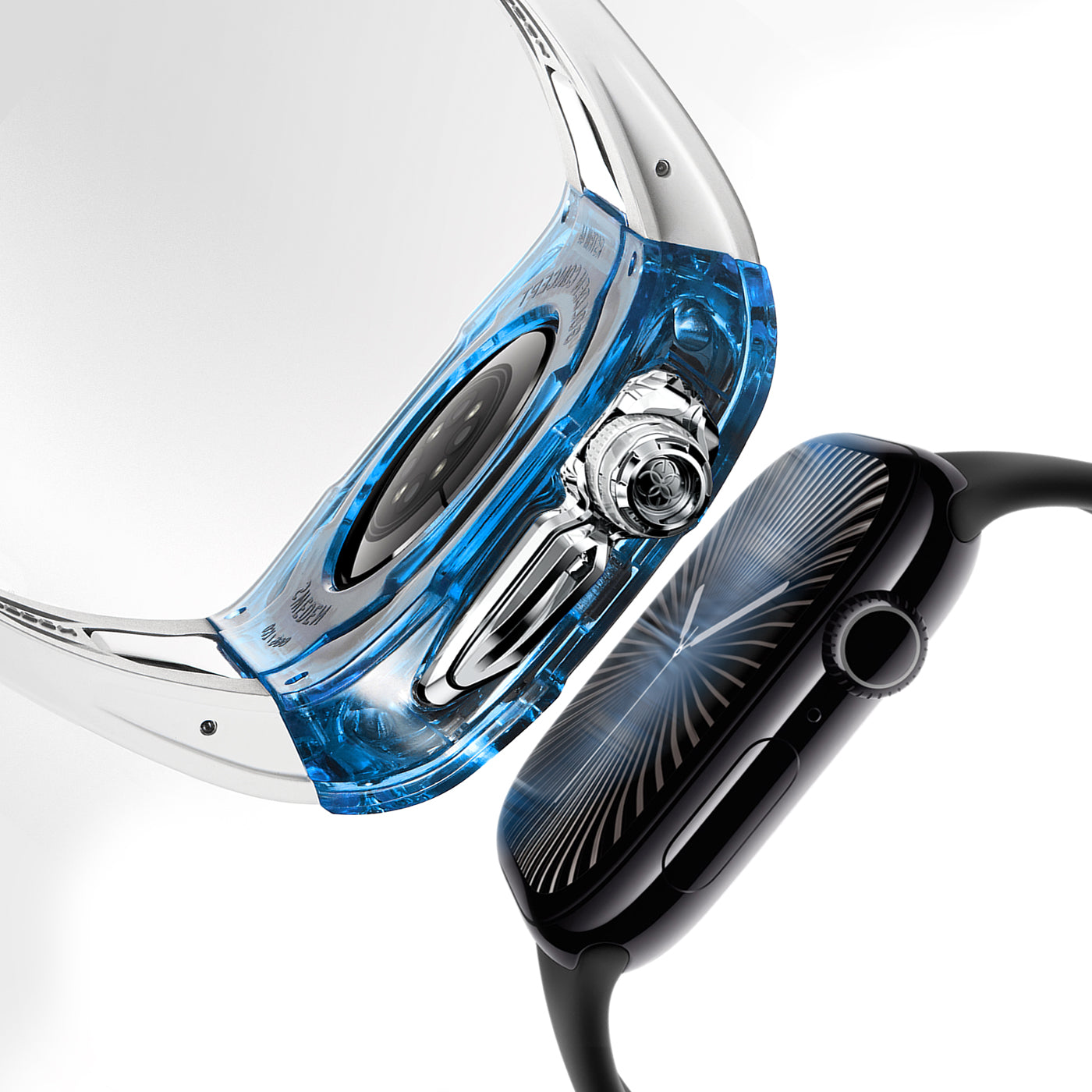 Tailored for the Apple Watch Series 10, this case embodies precision and innovation. Its transparent design in a rich blue hue, accented with stainless steel elements, seamlessly enhances your Apple Watch—elevating both form and function while making it a modern statement piece.