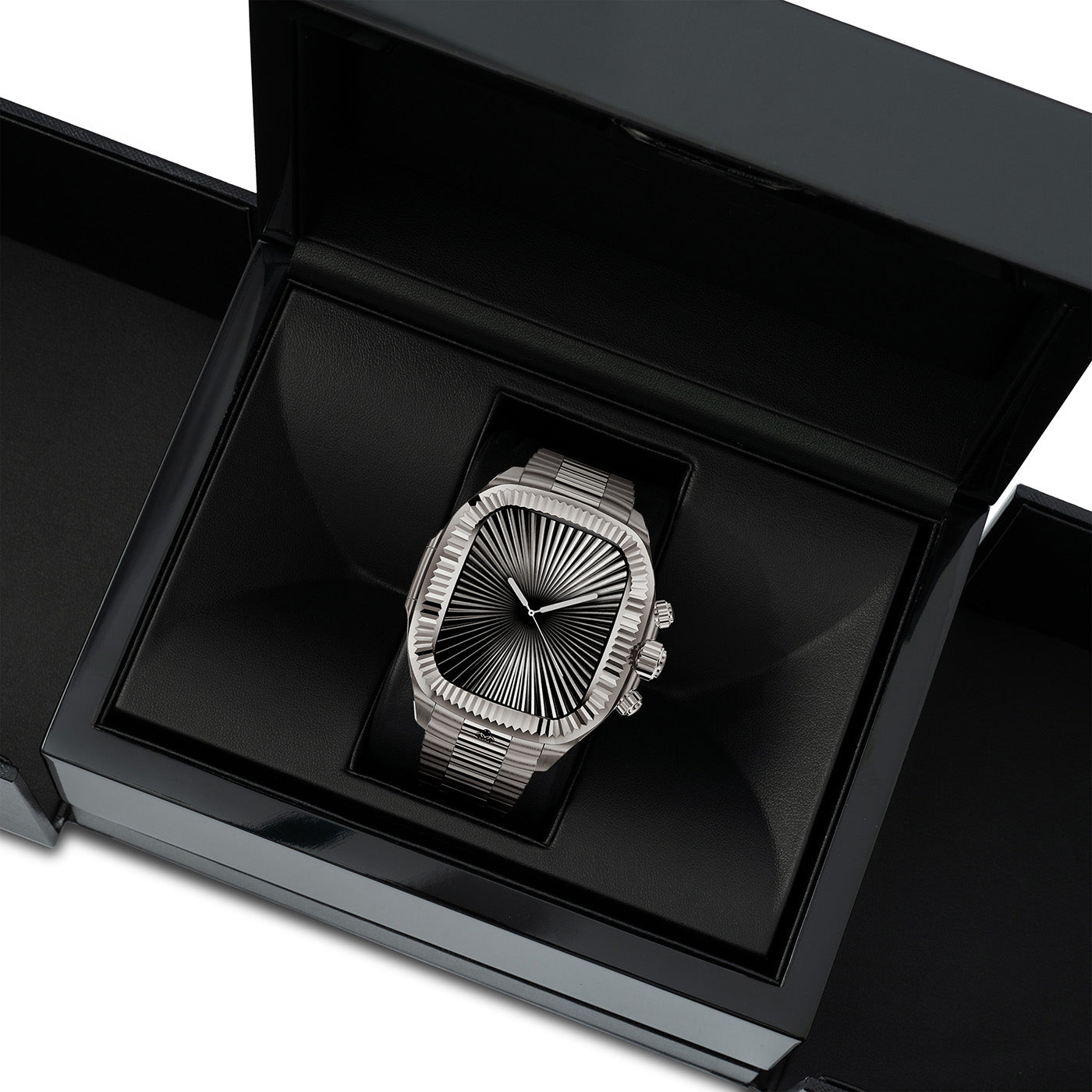 Each Crown Classic comes in a box as exceptional as the watch itself. Crafted from elegant black wood with a luxurious leather interior, this carefully designed case is a true reflection of our commitment to excellence. Unveiling your new watch case becomes an unforgettable experience, elevating the moment to match the prestige of the Crown Classic inside.