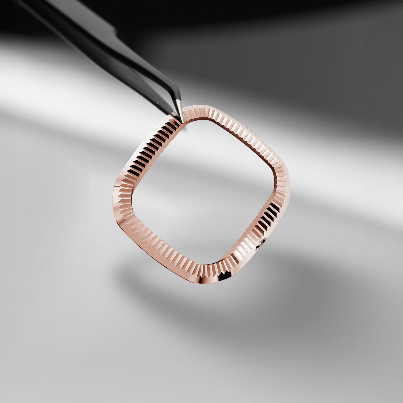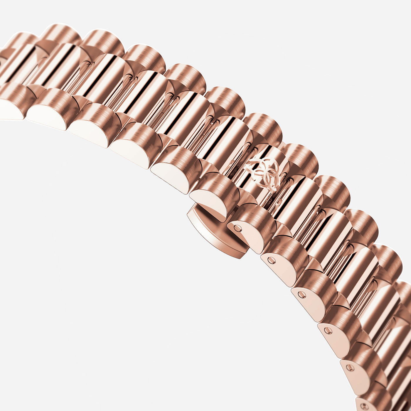 The Crown Edition redefines the traditional watch case with a bold design shift, relocating the crown to the center of the right side for enhanced aesthetics and functionality. This elegant timepiece redefines luxury, elevating style and sophistication to new heights.