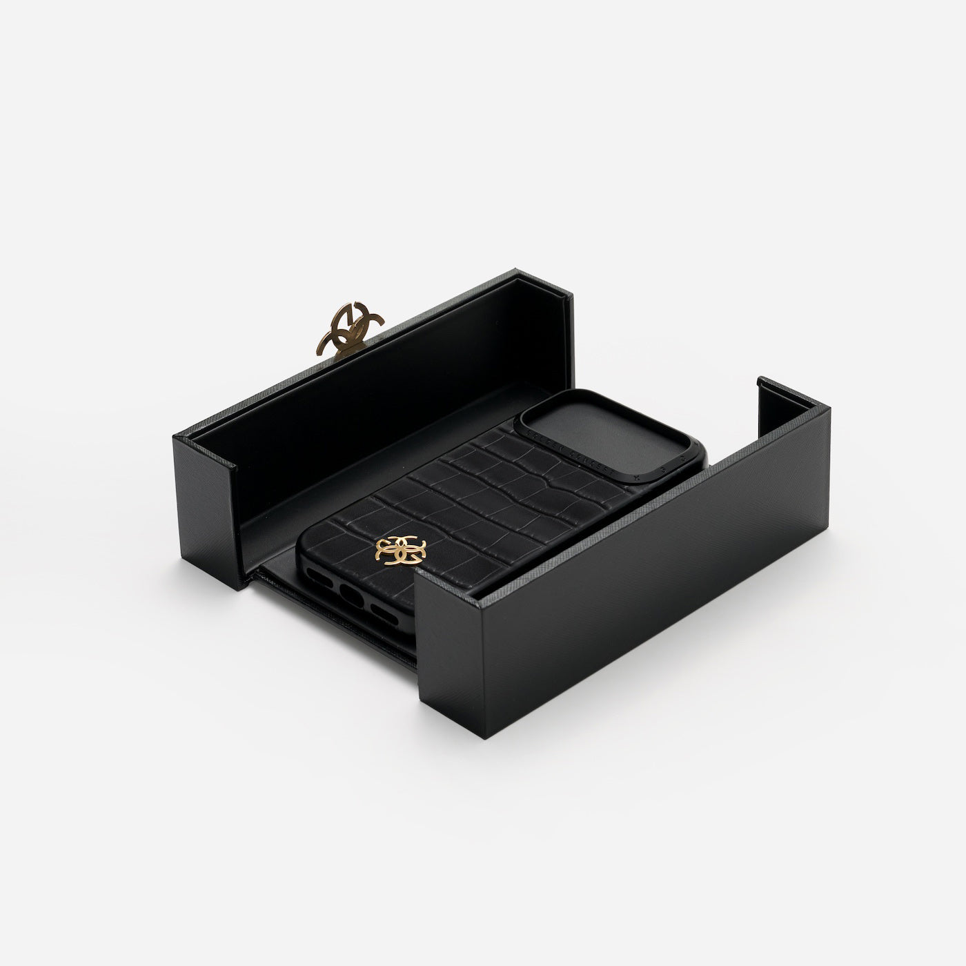 Crafted for iPhone 17 Pro, Pro Max, and iPhone 17 Air, this case is wrapped in Italian leather embossed with a detailed crocodile pattern. The texture lends a bold yet refined presence, transforming the clean lines of the iPhone into a statement of character.