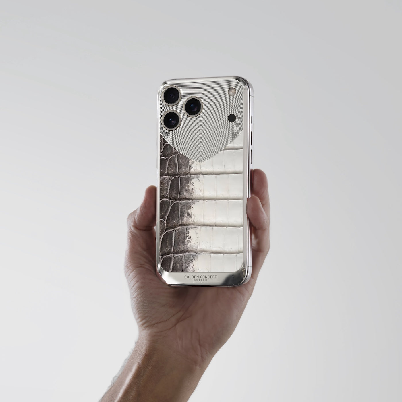 Made for iPhone 17 Pro, Pro Max, and iPhone 17 Air, the Himalayan Edition is the pinnacle of the Exotic Collection. Crafted from rare Nile crocodile leather with a natural light-to-dark gradient, each case is unique by nature. Set into polished silver-tone stainless steel, it brings quiet prestige to the iPhone’s silhouette.